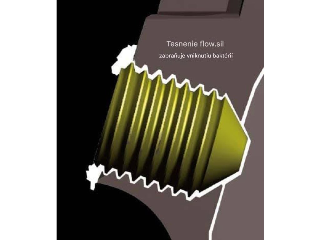 flow.sil je ideálny na vyplnenie medzery medzi abutmentom a protetickou náhradou alebo skrutkou a zároveň ho dezinfikuje. Znižuje perimplantitídu. Znižuje halitózu. Zabraňuje chronickému zápalu v oblasti aplikácie. Zabraňuje kontaminácii kavít. Zabezpečuje čisté utesnenie.