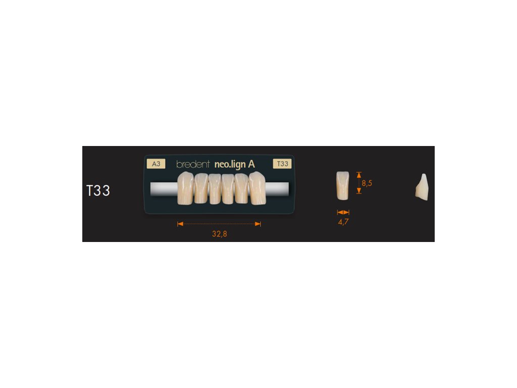 T (zuby) ...U (dolné) .....T33 (tvar/veľkosť zubov) .... A10 (farba VITA / A1) .... S (set)